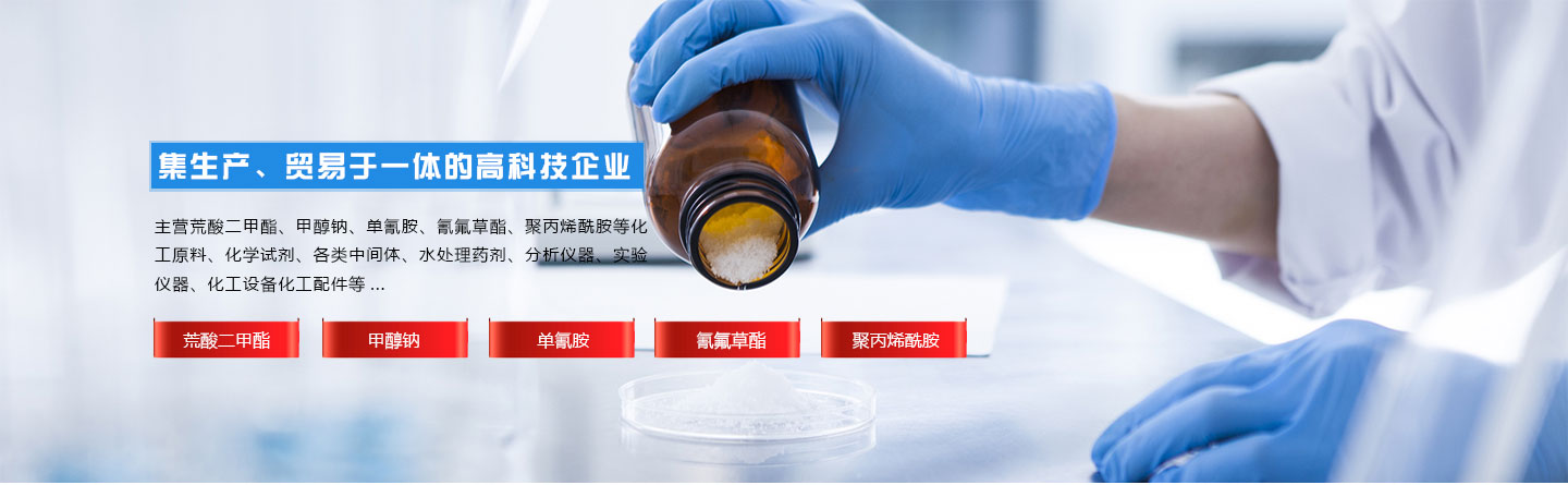 主營荒酸二甲酯、甲醇鈉、單氰胺、氰氟草酯、聚丙烯酰胺等化工原料、化學試劑、各類中間體、水處理藥劑、分析儀器、實驗儀器、化工設備化工配件等